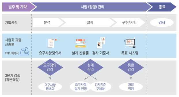 ②산출물: 요구사항정의서, 분석단계문서, 설계단계문서 등 적용 방법론에 따라 단계별로 제출하는 결과물